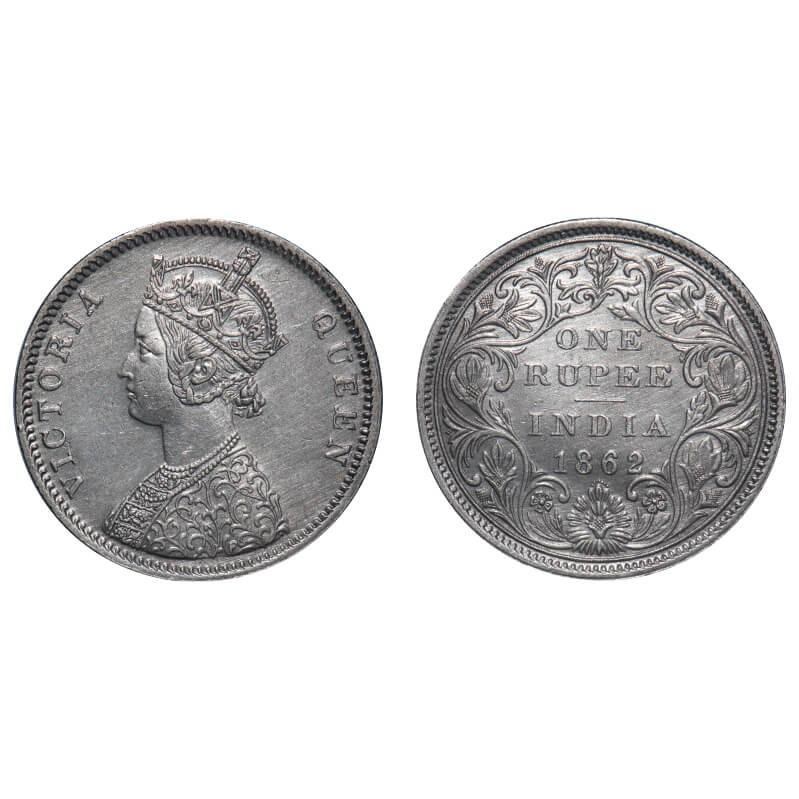 Victoria Queen, Silver, Rupee, 1862, Bombay Mint, A/II/0/6, w/o bottom stroke of numeral 1, w/o ini...