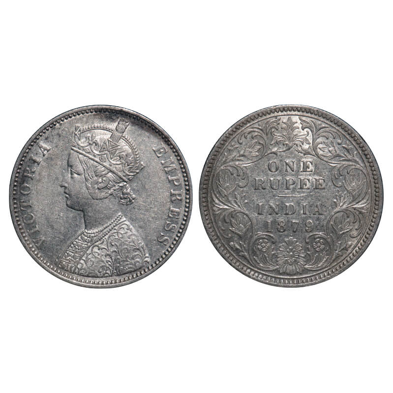 Victoria Empress, Silver, Rupee, 1879, Bombay Mint, A3/I, Dot. F. Prid 154. GK 460. About Uncirculated. Very Scarce.