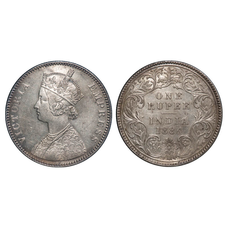 Victoria Empress, Silver, Rupee, 1884, Calcutta Mint, A1/I, 'C' incused. F. Prid 123. GK 493. About...