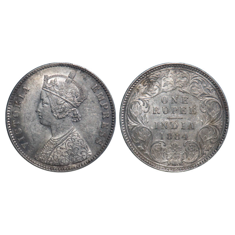 Victoria Empress, Silver, Rupee, 1884, Calcutta Mint, A1/I, 'C' incused. F. Prid 123. GK 493. About Uncirculated. Very Scarce.