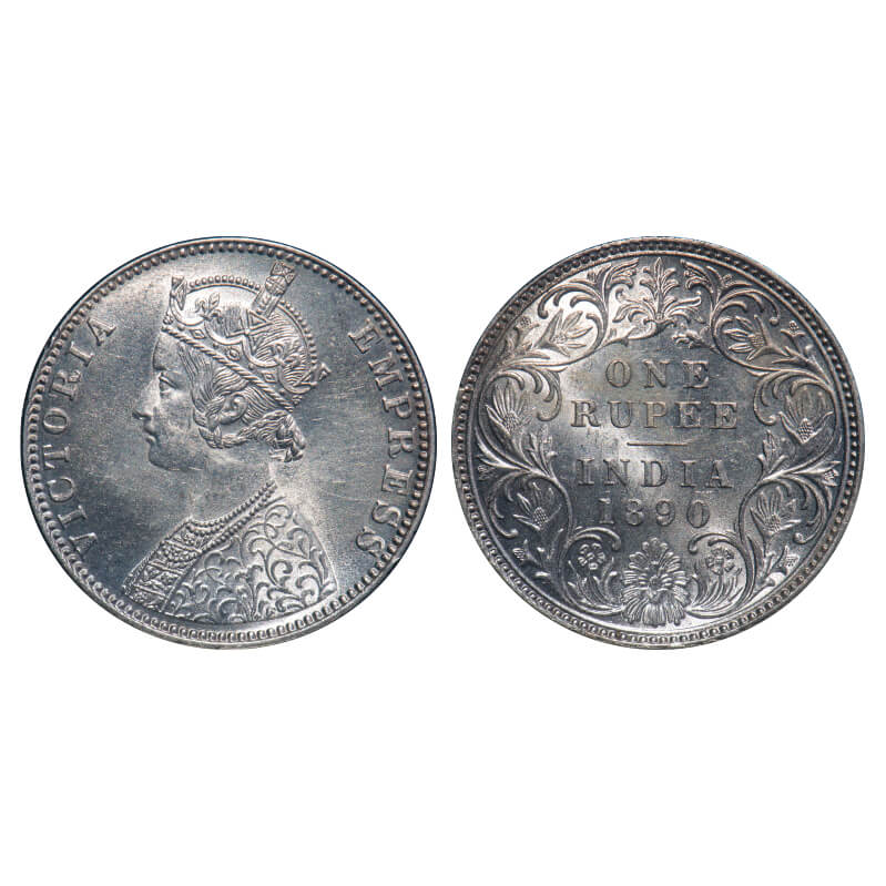 Victoria Empress, Silver, Rupee, 1890, Bombay Mint, C2/I, 'B' incused. F. Prid 178. GK 566. Brilliant Uncirculated with luster. Very Rare.