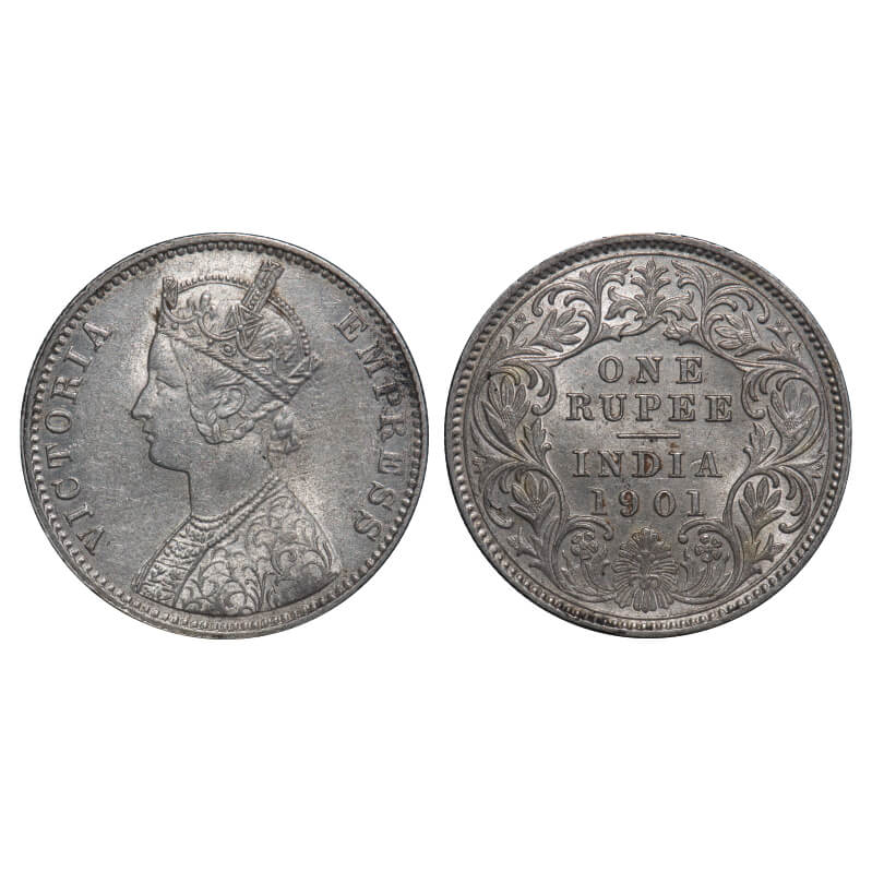 Victoria Empress, Silver, Rupee, 1901, Calcutta Mint, C3/I(i), 'C' incused, Ghost on Rev. F. Prid 139. GK 598. About Uncirculated. Rare.