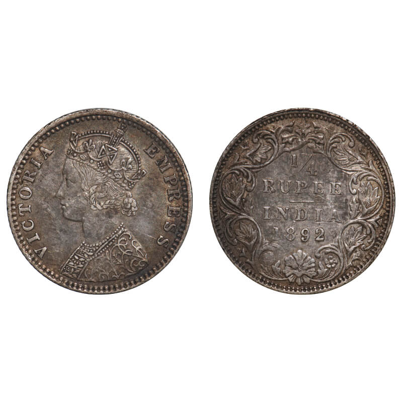 Victoria Empress, Silver, 1/4 Rupee, 1892, Bombay Mint, C(i)/I, 'B' incused. F. Prid 426. GK 722. Extremely Fine+, Toned. Very Scarce.