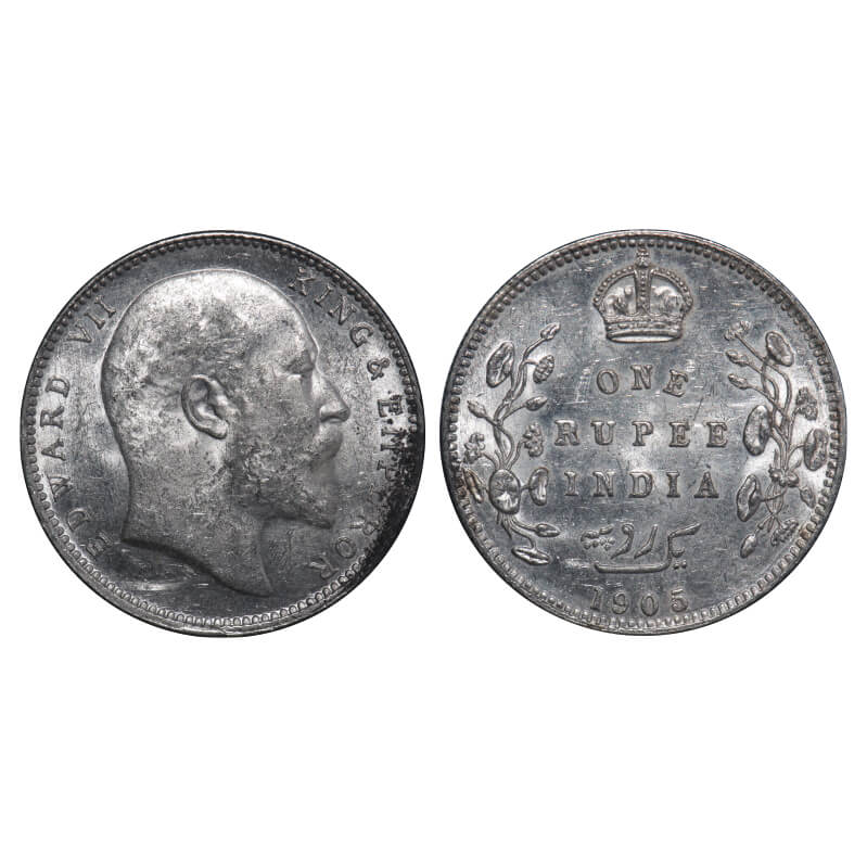 Edward VII, Silver, Rupee, 1905, Bombay Mint, 'B' incused & dot, Top stroke of numeral 5 long, Rim edge has some lead deposit on Obv & Rev. F. Prid 201. GK 936. About Uncirculated with luster. Very Scarce.