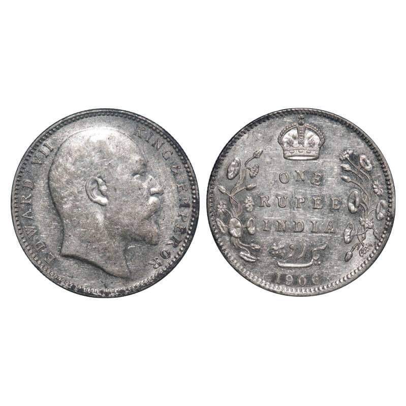 Edward VII, Silver, Rupee, 1906, Calcutta Mint, No mint mark, Die cracks on Rev. F. Prid 192. GK 93...