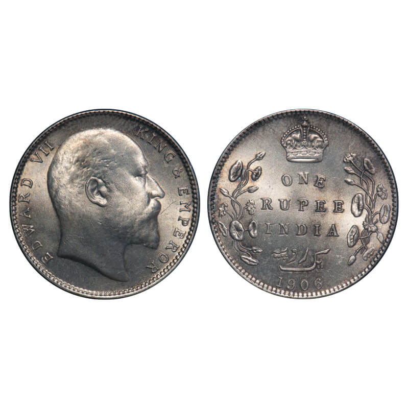 Edward VII, Silver, Rupee, 1906, Bombay Mint, 'B' incused & dot. F. Prid 202. GK 940. Almost Uncirculated. Very Scarce.