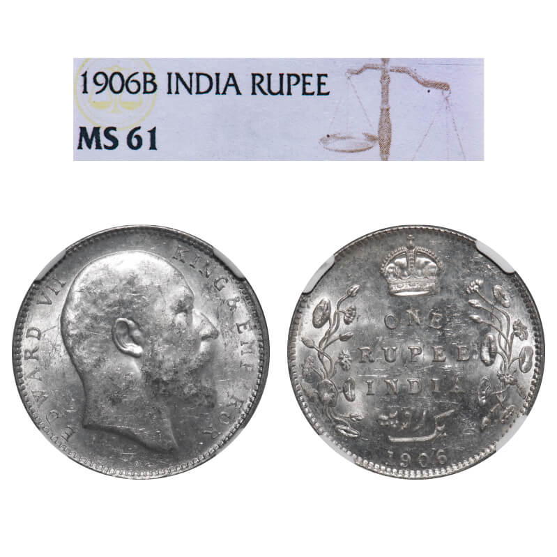 Edward VII, Silver, Rupee, 1906, Bombay Mint, 'B' incused & dot. F. Prid 202. GK 940. NGC Slabbed MS 61. Very Rare.