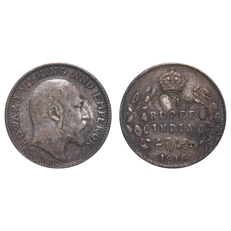 Edward VII, Silver, 1/4 Rupee, 1910, Bombay Mint, Dot. F. Prid Unlisted. GK 979. Extremely Fine+. V...