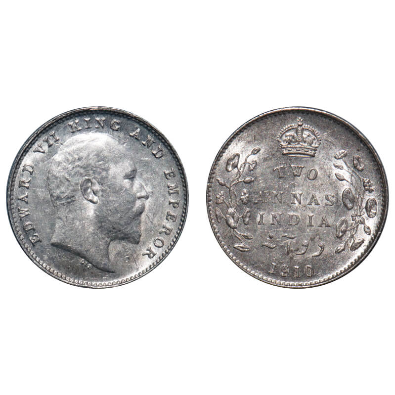 Edward VII, Silver, 2 Annas, 1910, Calcutta Mint, No mint mark. F. Prid 563. GK 987. Extremely Fine...