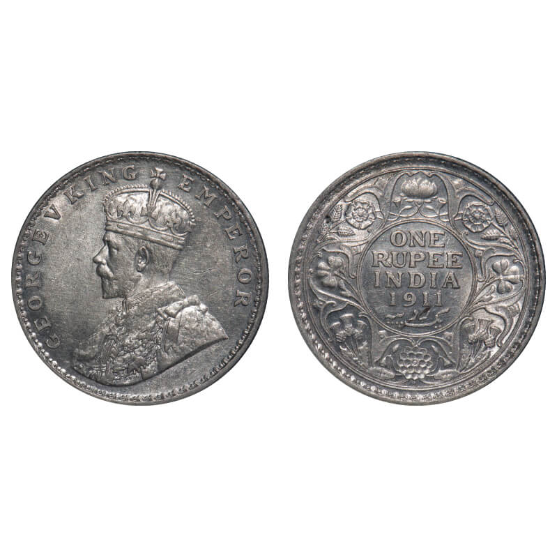 George V, Silver, Rupee, 1911, Bombay Mint, Dot, Pig-type. F. Prid 217. GK 1022. Uncirculated. Rare.