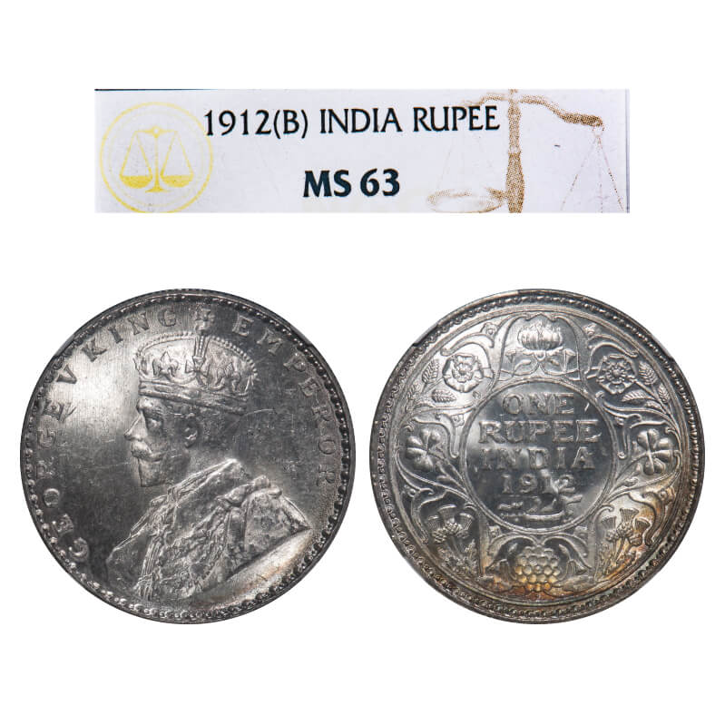 George V, Silver, Rupee, 1912, Bombay Mint, Dot, Re-drawn Elephant with long tusk. F. Prid 218. GK 1026. NGC Slabbed MS 63. Very Rare.