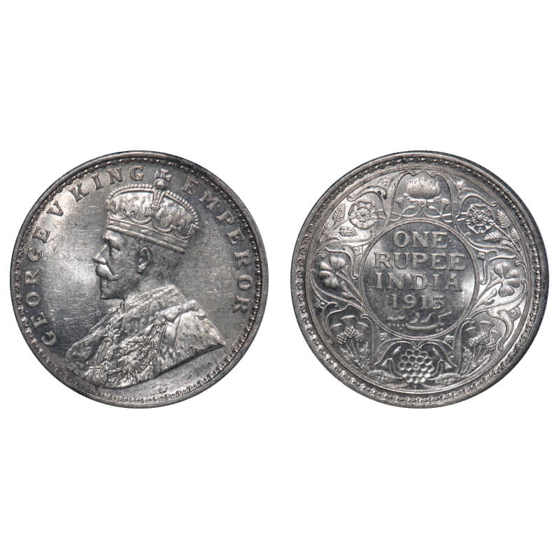 George V, Silver, Rupee, 1913, Bombay Mint, Dot, Elephant. F. Prid 219. GK 1028. Brilliant Uncirculated. Rare.