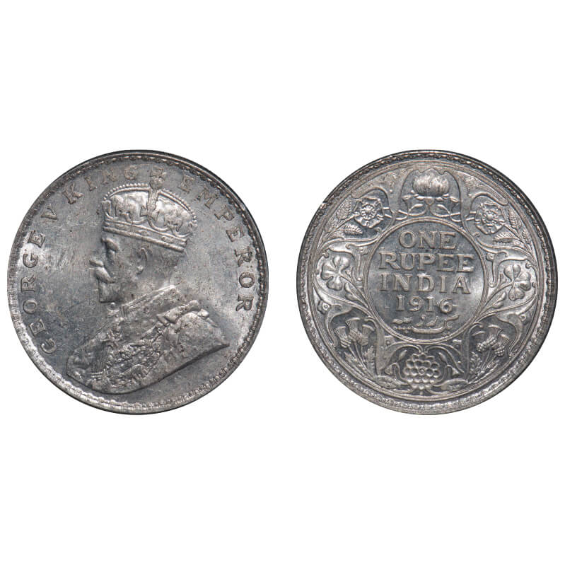 George V, Silver, Rupee, 1916, Calcutta Mint, No dot, Elephant. F. Prid 212. GK 1033. Mint State. R...