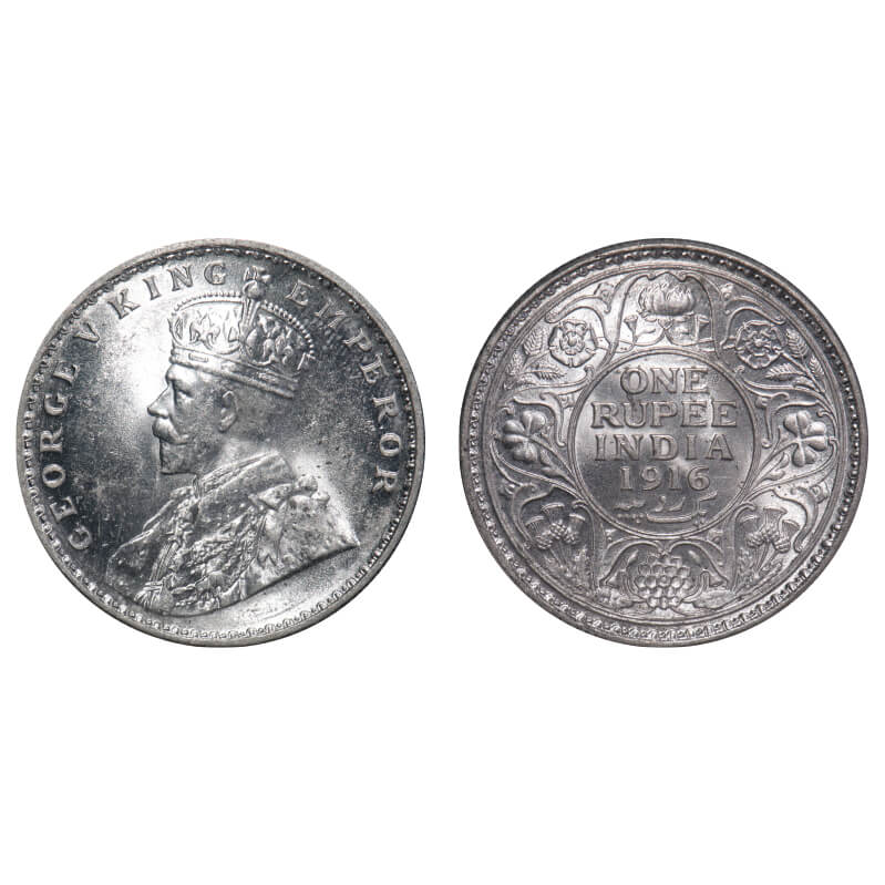 George V, Silver, Rupee, 1916, Calcutta Mint, No dot, Elephant. F. Prid 212. GK 1033. Mint State. Rare.