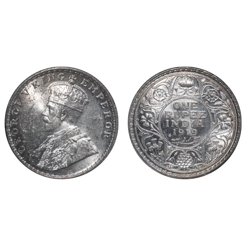 George V, Silver, Rupee, 1919, Calcutta Mint, No dot, Elephant. F. Prid 215. GK 1039. NGC Slabbed M...