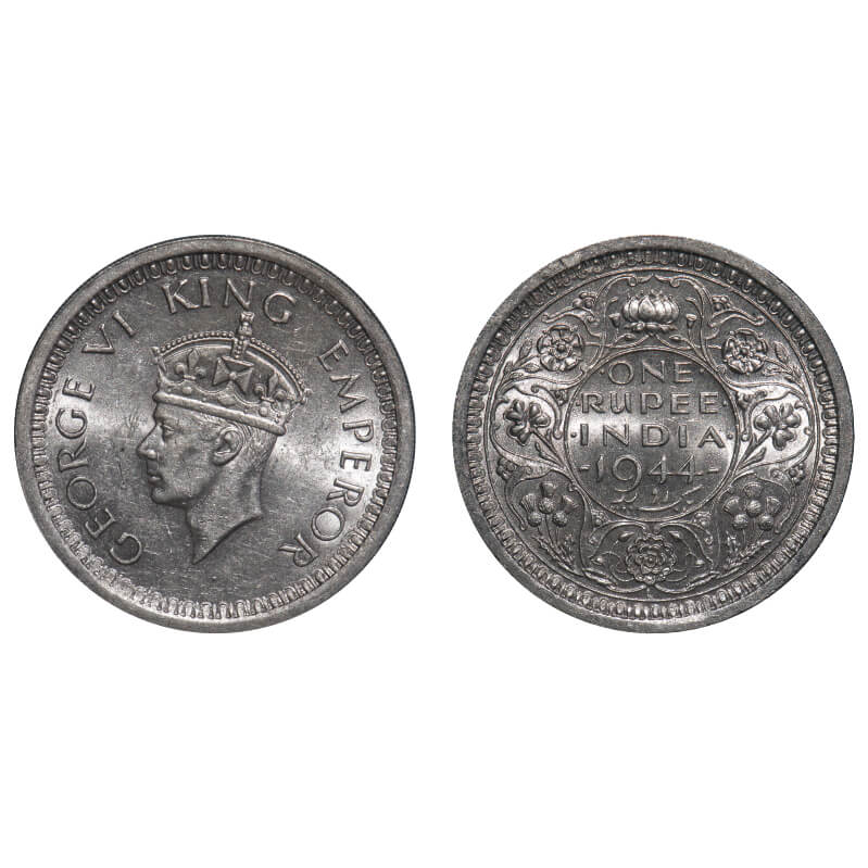 | George VI, Half Silver, Rupee, 1944, Lahore Mint, D/II, 'L' raised, Security edge, Thin L. F. Prid 247. GK 1282. Mint State. Rare. |