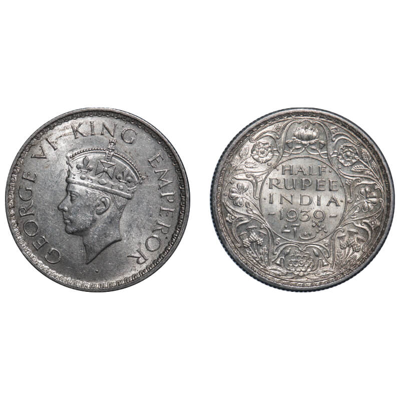 George VI, Silver, Half Rupee, 1939, Calcutta Mint, A/I, No dot, Head Type I, Milled edge. F. Prid ...