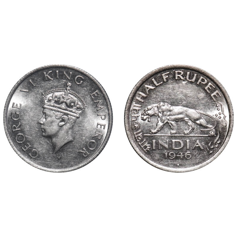 George VI, Half Silver, Half Rupee, 1945, Lahore Mint, B/II, 'L' raised, Head Type II, Security edg...