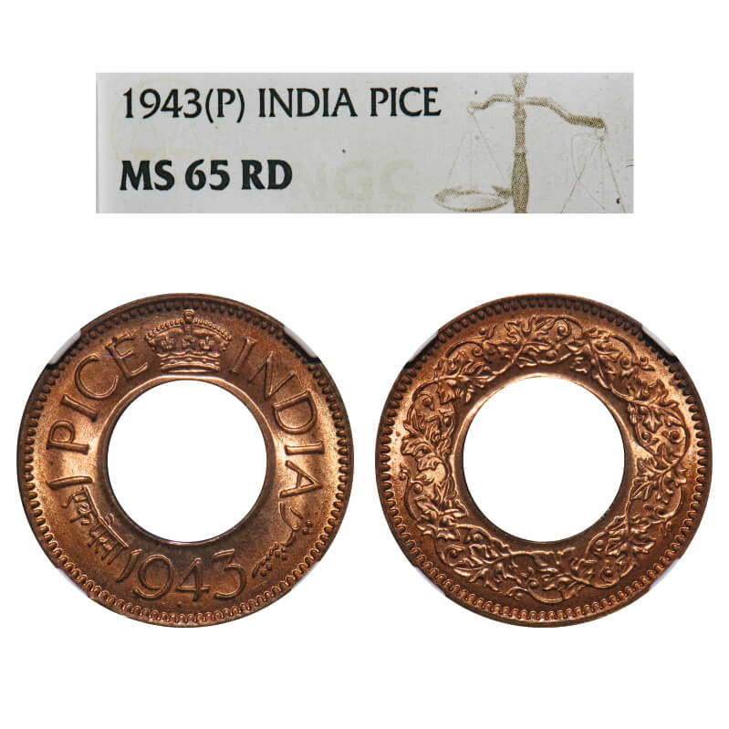 George VI, Bronze, 1 Pice, 1943, Calcutta Mint, No dot. F. Prid Unlisted. GK Unlisted. NGC Slabbed ...