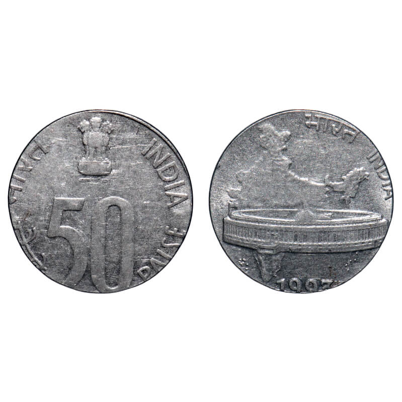 50 Paisa, 1993, FSS, 2.81g, Error-50 Paisa struck on 25 Paisa Flan, About Uncirculated, Scarce.