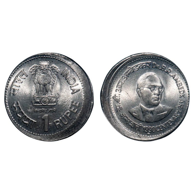1 Rupee, 1990, Copper-Nickle, 5.93g, Mule with no dotted circle, Dr B R Ambedkar Centenary, Bombay ...