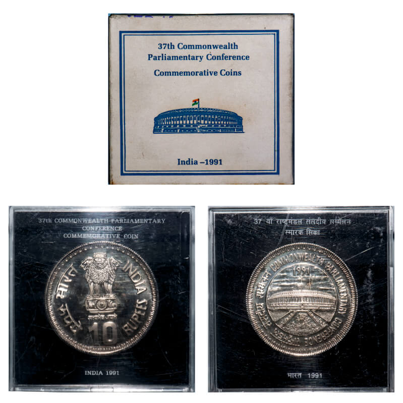 1991, Proof 10 Rupees, 37TH Commonwealth Parliamentary Conference, Bombay Mint, within acrylic box ...