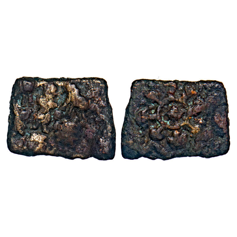 Post Mauryan, Vidarbha region, 'River-goddess' type uninscribed copper coin (c. 200 - 150 BC), 0.6...