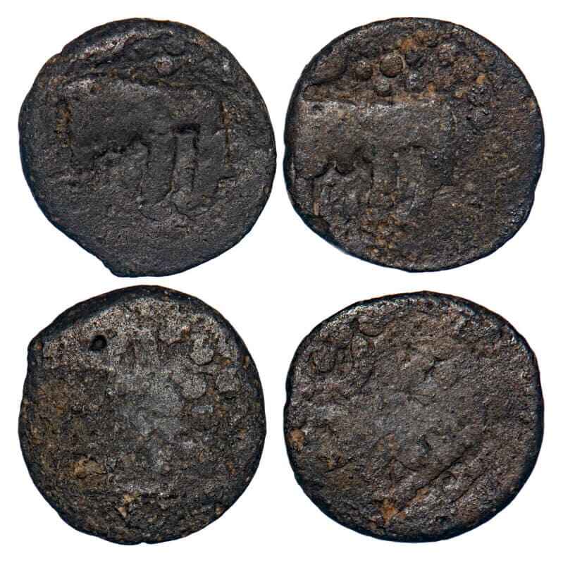 Post-Kshatrapa, Khandesh Region, Uninscribed type, Lead Unit, ( 2 Coins), 2.49 & 1.83gm, Obv: Elephant walking to right side above cluster of dots, Rev: Traces of symbols. About Very Fine, Scarce.