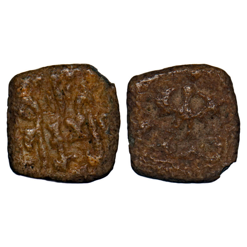 | Guptas, Kumaragupta I, Lead Unit, 2.40gm, 13.55x12.92mm, Garuda Type of Western India, Obv: Garuda standing with wings outstreached, with beaded border around, Rev: Brahmi legend ‘Shri Kumaragupta’ in a square border of dots. Pieper # 3584. Very Fine, Scarce. |