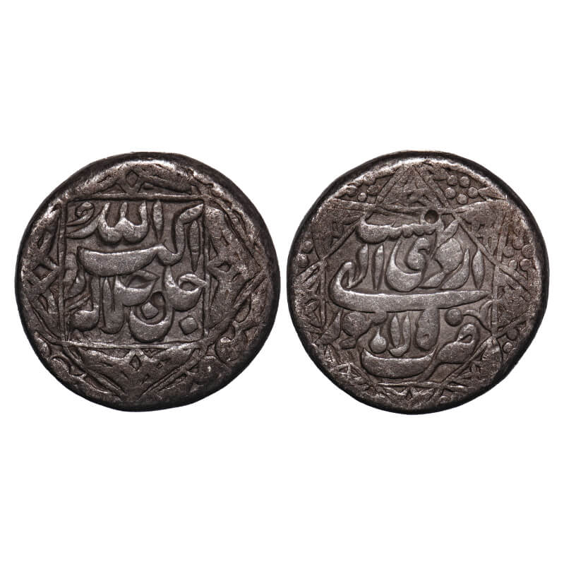 | Akbar (963-1014 /1556-1605 AD), Silver Rupee, 11.30g, Lahore Mint, Ilahi Month "Ardibihisht" (Taurus), Ilahi Year 50, Last year of Akbar Reign,Obv: legend "Jalla Jalalahu Allahu Akbar" within a ornamental quatrefoil borders with lozenge star, Rev: legend "Ardibihisht" month at the top, "zarb Lahore" & "Ilahi 50" at the bottom within eight pointed octagonal star,Attractively Toned. KM # 94.3. Toned, Very Fine+, Rare. |