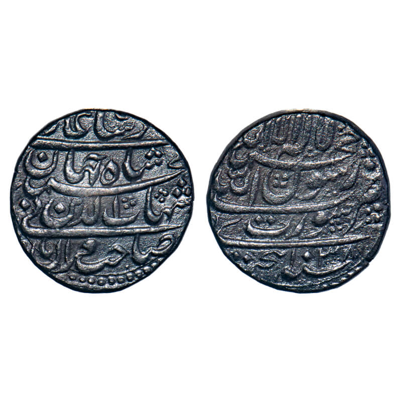 Shah Jahan I, Silver Rupee, 11.41g, Surat Mint, AH 1037/1 (sanah is 1 and not ahad), legend in four...