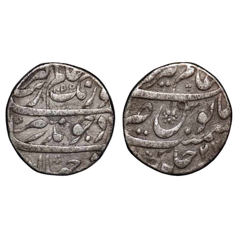 Aurangzeb, Silver Rupee, 11.04g, Alamgirpur (Bhilsa) Mint, AH 1095 (error with retrograde 9)/27 RY, mint at top. KM 300.9. Very Fine, Scarce.