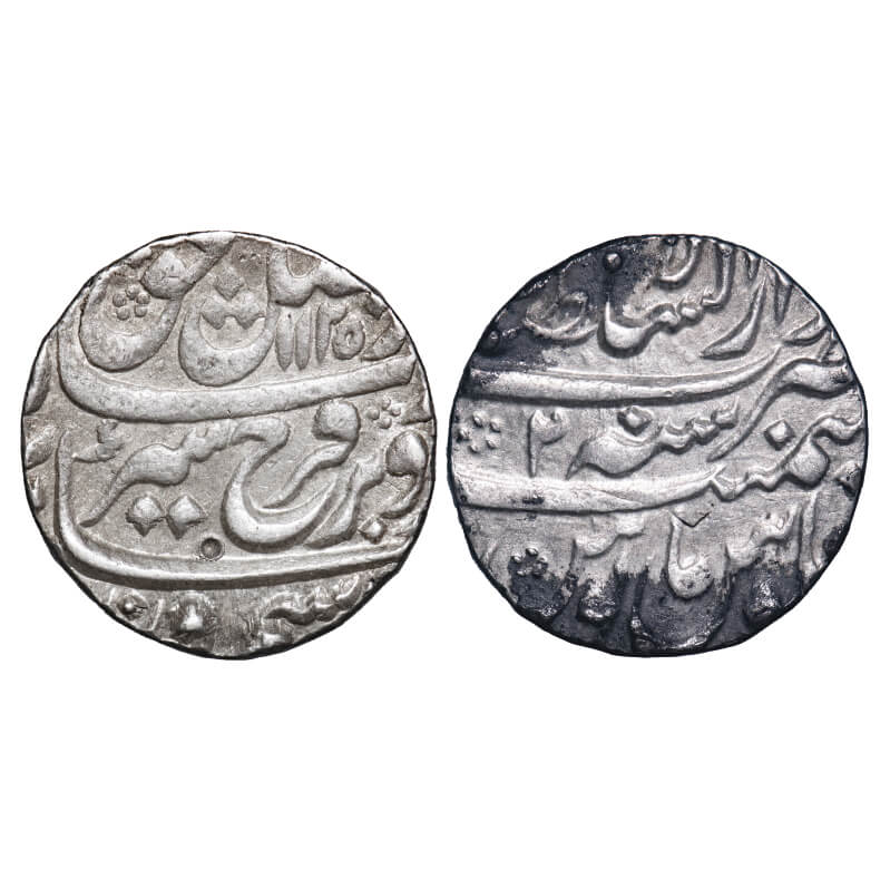 Farrukhsiyar, Silver Rupee, 11.39g, Gwalior Mint,AH 1129/6 RY. partial dotted borders seen both sid...