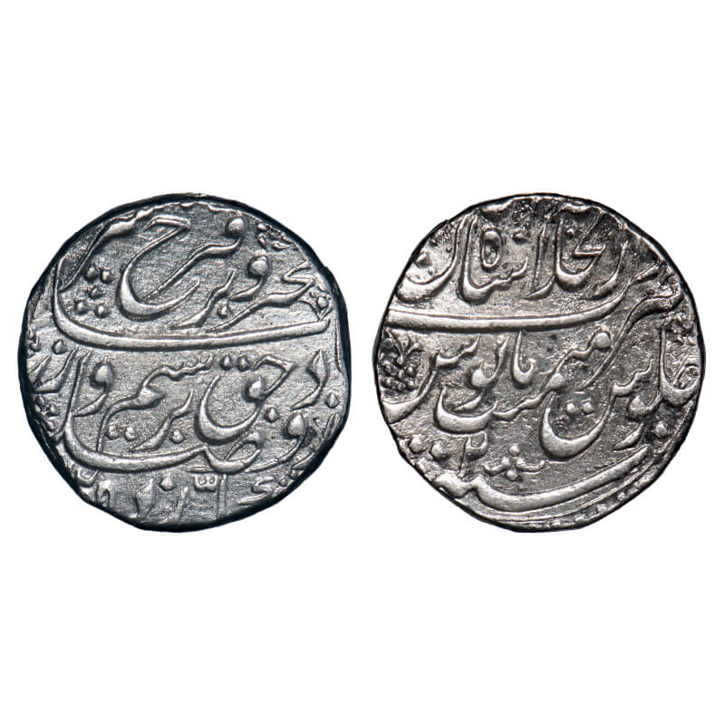 Farrukhsiyar, Silver Rupee, 11.53g, Surat Mint. AH 1128/5 RY, KM 377.59. complete coin well centere...
