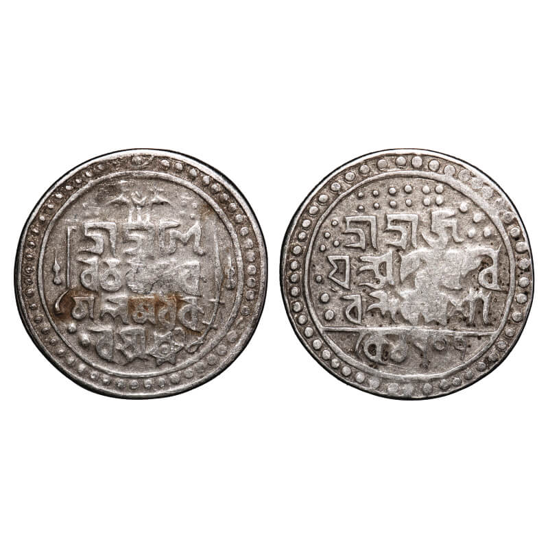 Jaintiapur, Silver Rupee, Ramsimha II, SE 1712, Obv: Sri Sri Si/va Charana ka/mala Madhu Ka/rasya, ...