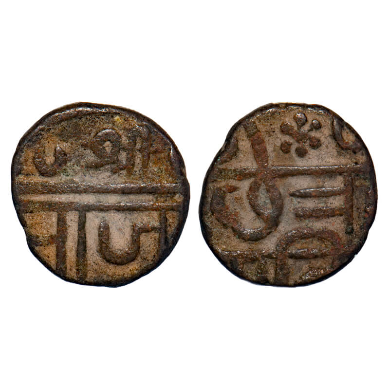 Maratha Confederacy, Copper Shivrai Paisa, 9.32g, Peshwai do dandi type, Obv: Shri Raja (Siv) with crescent to left of shri, Rev: Chhatrapati and flower above. Very Fine, Scarce.