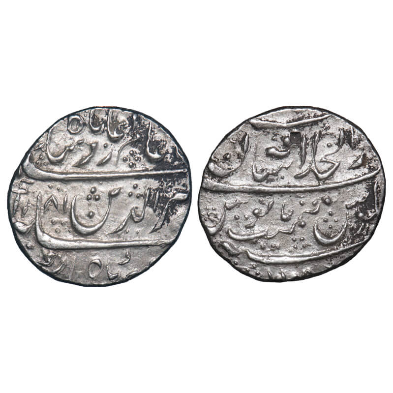 | Maratha Confederacy, Silver Rupee, 11.23g, Athni, Shahjahanabad Dar ul Khilafat Athni Mint, AH (11)81, INO Alamgir II, 'Taban' Couplet. AH 1181, M&W T2 type. Very Fine, Scarce. |