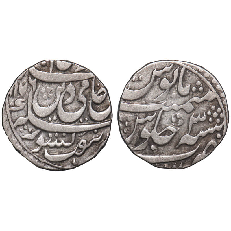 | Rohilkhand, Silver Rupee, 11.13g, Anwala (anola) Mint, under Regent Hafiz Rahmat Khan, ino Shah Alam II, AH 1176/3 RY, Couplet Obv: sikka zad bar haft kishwar saya-e-fazle elah, hami- din-e-Muhammad Shah Alam Badshah, Rev: sana 3 julus flowers & rosette. KM 16.1 type unlisted. Very Fine, Scarce. |
