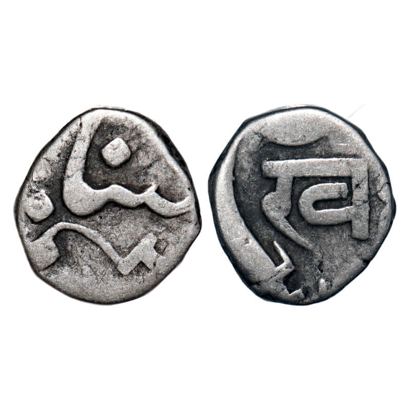 Baroda, Silver 1/4 Rupee, Khande Rao (AH 1273-1287 / 1856-1870 AD), Baroda Mint, INO Khel Khas Samsher Bahadur on obverse, sword & nagari letter 'Kha & (Ga)' on reverse. KM Y 11. Very Fine, Scarce.