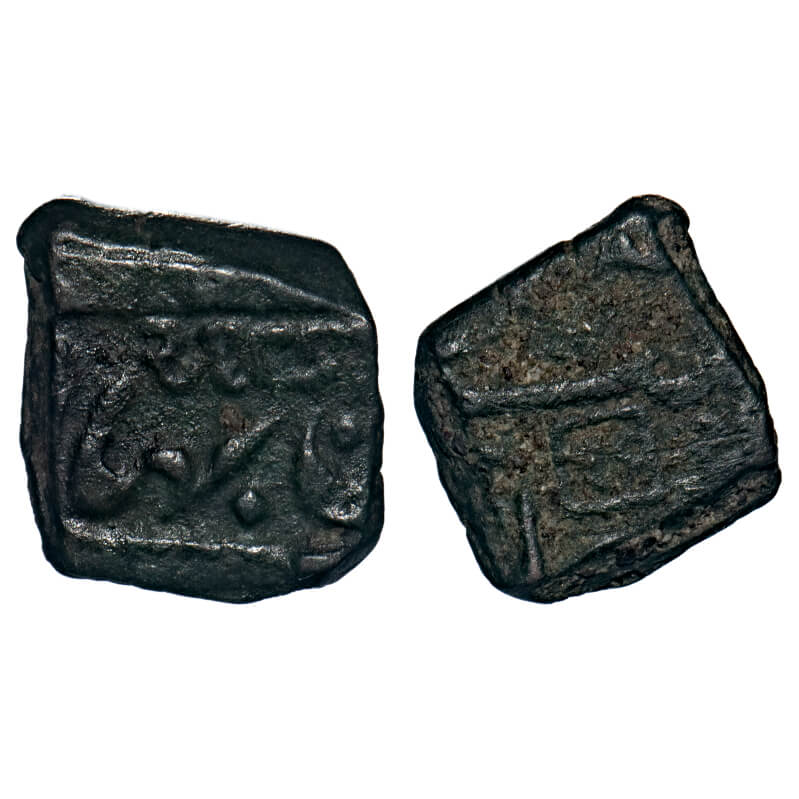 | Bhaunagar, Copper Square Falus, 5.75g, 15x12.mm, INO Shah Jahan III, Bhaunagar Mint, with VS 2187(2) on obverse & gujarati 16, in gujarati punch on reverse. Unlisted in KM. Very Fine, Rare. |