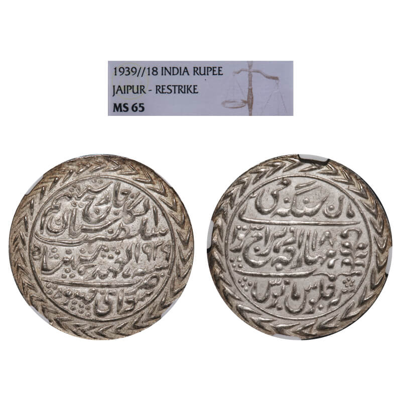 Jaipur, Nazarana Rupee, Mansingh II (AH 1341-1369/1922-1949 AD), AH 1939/18 RY, INO George VI, Sawai Jaipur mint. KM 196, Restrike NGC graded MS 65 , Scarce.