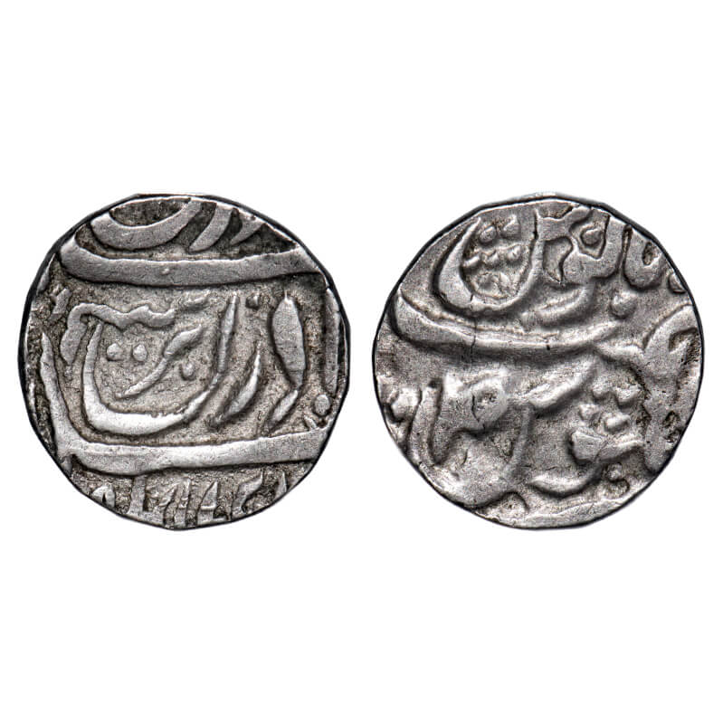 | Jind, Silver Rupee, 10.95g, Raja Gajpat Singh, (Sahrind) Mint,INO Ahmad Shah Durrani, Suad & Emerging Star in Seen of julus, Exceptionally Large Flan for Type, without any test mark, Note - Gajpat Singh is the founder of Jind state & maternal grandfather of Sikh Maharaja Ranjit Singh. KM 1 Type, About Extremely Fine, Rare. |