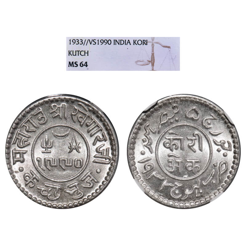 Kutch, Silver Kori, Khengarji III, INO George V, VS 1990/1933 AD. Rajgor. 231.11. NGC graded MS 64, Very Scarce.