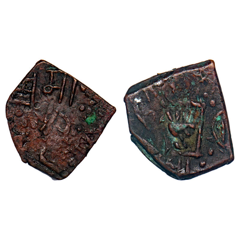 Makrai State, Copper Square Paisa, 10.41g, Raja Bharat Shah (1886-1920 AD), katar on obv, trident o...