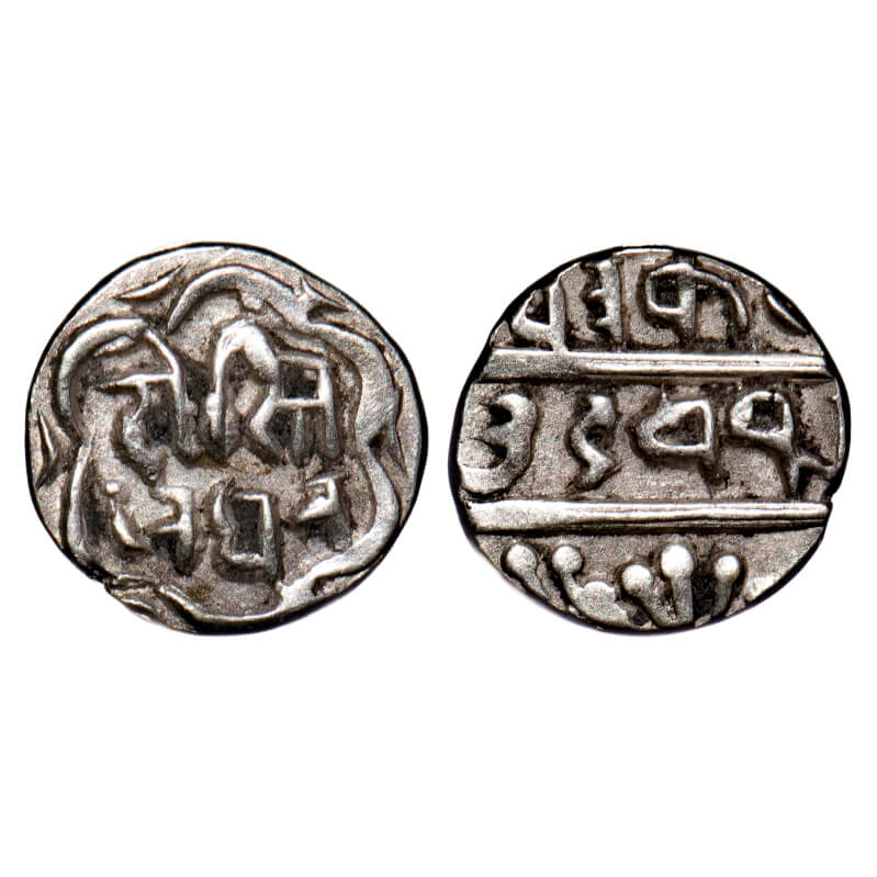 | Mewar, Swarupshahi, Silver 1/16 Rupee, 0.64g, Fatteh Singh (VS 1941-1987/ 1884-1930 AD), Udaipur Mint, VS 1985, Dosti London in nagari. KM Y7.1. Very Fine, Scarce. |