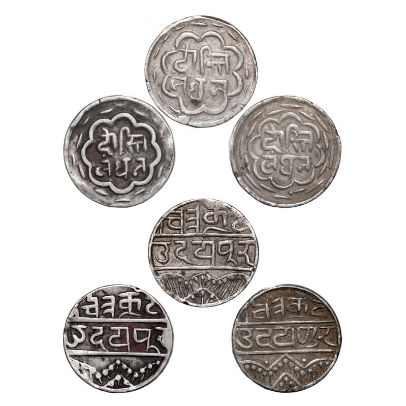 Mewar, Swarupshahi Rupee, Silver (3 coins), Fatteh Singh (VS 1941-1987/ 1884-1930 AD), Udaipur Mint, VS 1985, Dosti London in nagari. KM 8. Very Fine, Scarce.
