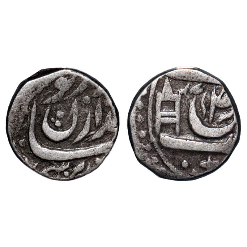 | Patiala, Silver Rupee, 10.97g, Rajinder Singh (VS 1933-1957/1876 -1900 AD), INO Ahmad Shah Durrani, Dual Dates VS (19)47 on reverse & AH (130)6 on obverse, along with "Suaad" symbol in 'seen' julus, Rajinder Singh's personal symbol large complete "Katar" & State Symbol on Reverse. Very Fine+, Scarce. |