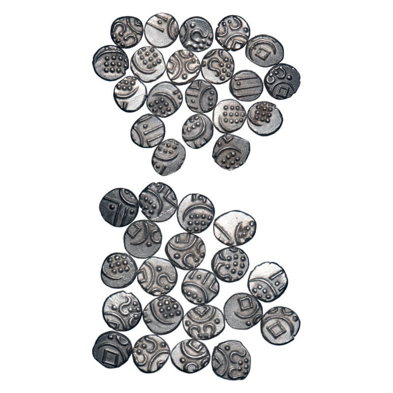 Travancore, Silver Chukram, 0.38g, (20 Coins), Anizham Thirunal Marthanda Varma (ME 904-933 / 1729-1758 AD), stylised depiction of Vishnupadam. BS 168 types. Extremely Fine, Scarce.