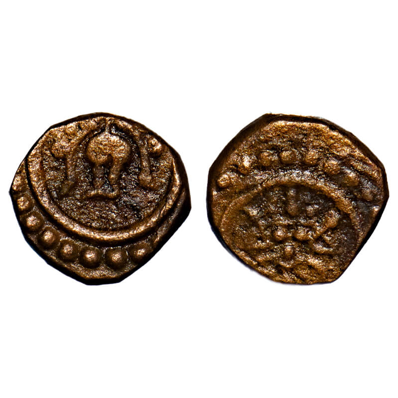 Travancore, Copper Thira Cash, 1.47g, Obv: Deer to right head turned back, Rev: stylised battle axe...