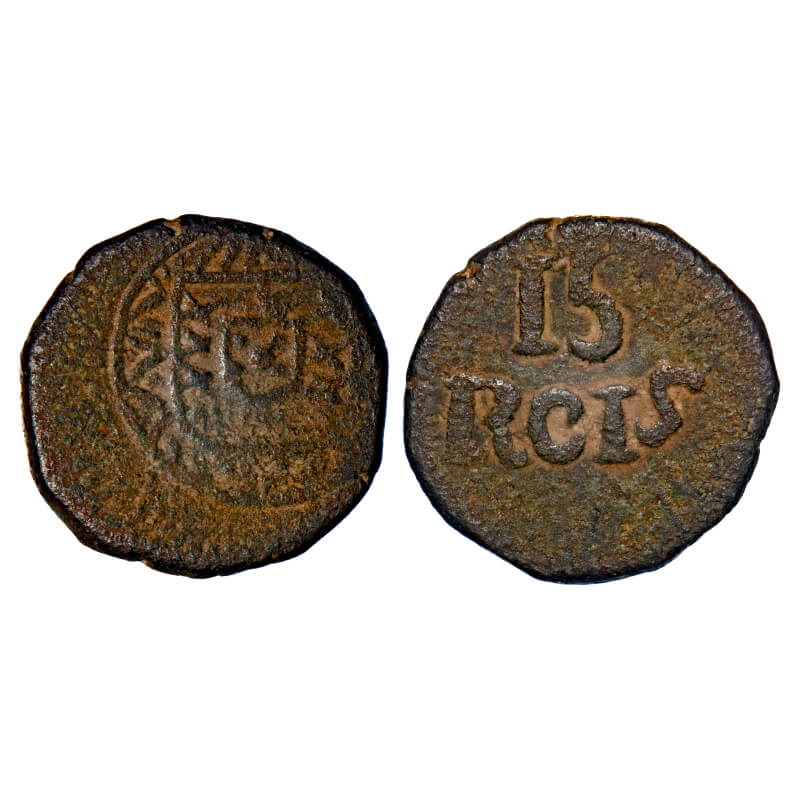 Indo Portuguese, Copper 15 Reis, 9.25g, D. Joao VI (1816-1826 AD), Obv: Crown, Rev: Denomination. A.Gomes (page 582) 37.01,/ KM 232 type. Very Fine, Rare.